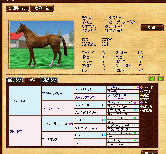 問い合わせメールしても返事ないし・・・ 糞運営でしたね さすがギャロップオンラインと同じ運営会社 もうアンスコします(´・ω・`) 競伝 昨日はなしたハルワタートの仔見事牝馬でした┐( ̄ー ̄)┌ 来S多めにつけるか(´・ω・`) 今年は結構多く付けたな 来Sは少し少なくなるかもしれません まぁ~LVうpすればいいんだけどね(´ー`)y-~~ アシュタロスの仔がダートそこそことか出てるんですが・・・ 芝馬になってればいいのですけど やっぱミスプロ×ミスプロというのは禁断だったかもしれません(´・ω・`) PR エリカ今日からCβなんですが結局出来ませんでした